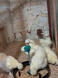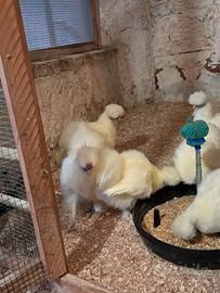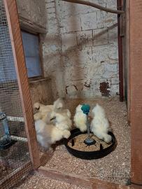 disponibili 7 galline moroseta nate il 10 settembre 2025, pronte per la deposizione. Da cova e allevamento naturale con chioccia moroseta. 1 maschio e 6 femmine vendute in blocco a 120?