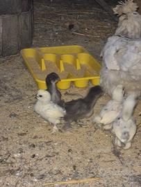 Splendidi e rari esemplari di Galline Moroseta. Uova di ottima qualità, belle ed eleganti anche da compagnia. Genitori vaccinati. Allevati al coperto. Prezzo cadauno