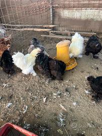Vendo in blocco come da foto maschi e femmine galline Moroseta no perditempo non vendo singolarmente il Prezzo è Tutto il blocco sono 10 ottime covatrici vendo pure singole