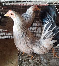 Cedo galline di piccola taglia (americanine). Sono due galletti e tre galline. Molto belle, abituate all' aperto, ottime covatrici... Contattatemi senza impegno per altre info...