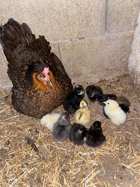cedo galline nane da cova,ottime chiocce e madri,disponibilità anche di chioccia con pulcini (visibile in foto),galli,galline ovaiole e una coppia di sabelpoot