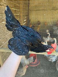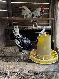 Coppia cocincina nana fulva 50€ Marans tre femmine e un maschio 120€ Coppia ancona 50€ Coppia amburgo 70€ Gallo padovano oro orlo nero 20€ volendo femmina tricolore per accompagnarlo Tutti animali nati 2025 Se volete solo le femmine i prezzi cambiano