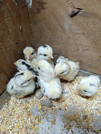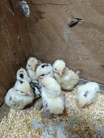 Vento chioccia con sette pulcini, razza serama europea, euro 60 tutti