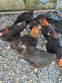 Soggetti di 6 mesi ancora Prenotabili per l open day di Maggio. Femmine: Araucane con ciuffi auricolari Brahama Faverolles Giganti Faverolles nane Livorno collo oro/argento Legbar Marans Oliver Orpington pern oro/argento Cocincine nane Moroseta Sussex Vorwerk Wyandotte Gigante Wyandotte nane Ayan Cemani. Maschi: Moroseta bianco Ayan Cemani Marans Araucane Per altre razze in base alla disponibilità. Su alcune razze le colorazioni verranno confermate intorno al 6 maggio (moroseta, cocincine, brahma) I prezzi sarà come al solito 40 le razze medio piccole e 50 le razze medio grandi