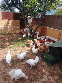 Vendo galline ovaiole Bianche e marro 1 gallina 6 euro 10 galline 50 euro Contatto solo whatsapp 3534138649 Grazie...