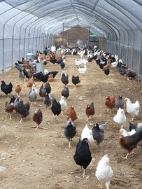 Galline ovaiole delle migliori selezioni per la produzione di uova,anche colorate,allevate a terra in ambiente sano e pulito.