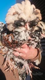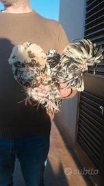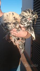Vendesi coppia di galline padovane di otto mesi con la gallina prossima all'uovo. In regalo un'altra gallina padovana della stessa covata che presenta il becco storto.. Ciò però non ha influito minimamente nella crescita e sviluppo