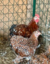 Possibilità di fare coppie di qualsiasi età, possibilità di maschi singoli a buon prezzo perché ne ho molti in più, possibilità di qualche femmina singola (a prezzo superiore perché in minor numero), tutti allevati a terra con ottimi prodotti, ottima razza sia per la cova visto che sono ottime chiocce, ottime anche per la quantità di uova che depongono e soprattutto animali molto docili e facili da gestire, le foto sono veritiere e fatte da me tutte in pollaio, soggetti quindi ben visibili senza aggiungere altre foto, i prezzi saranno rilasciati solo alle persone interessate e prima deve essere specificato il tipo di età e di soggetti che si vogliono acquistare per non confonderci, grazie e buon proseguimento.