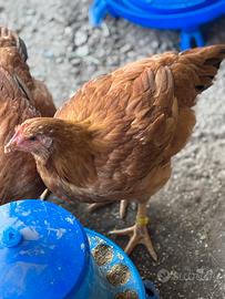 Vendo galline nostrane rosse di circa 2 mesi. Animali sani, cresciuti in ambiente domestico e abituati all'aperto. Attualmente pesano intorno ai 2 kg. Ottima produzione di uova una volta adulte. Ideali per chi dispone di un piccolo spazio esterno. Disponibili più esemplari. Per maggiori informazioni contattami in privato.