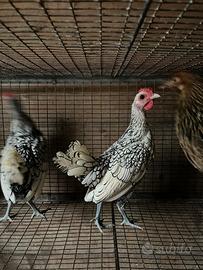 Galline variopinte, polli ornamentali, razze miste, sebright bianco-nero.
