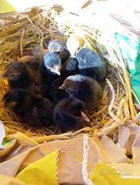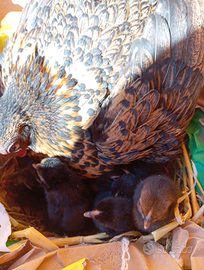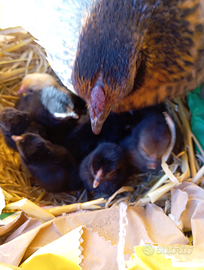 Vendo gallinella Sebright Oro con i suoi 10 pulcini nati il 30 dicembre,tutti di razza pura,prezzo totale 90 euro,solo i pulcini 60 euro