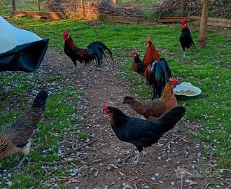 Vendo giovani galli e galline nane. Le femmine sono ottime chiocce, anche 4 o 5 covate l'anno. Vendo galletti singoli, coppie maschio femmina, trio un maschio e due femmine. Il prezzo è 15 euro a esemplare. Non vendo le femmine da sole. Ritiro in loco non consegno e non effettuo spedizioni.