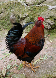 Gallo altsteirer giovane di 8 mesi (età documentabile con foto) una delle varietà di galline più antiche d'Europa, caratteristiche per i ciuffo, sia ovaiole e sia da carne
