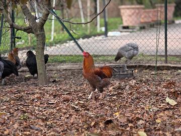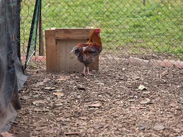 Con un certo rammarico cediamo Lello, di mesi 8, per eccesso di galli nel pollaio, con conseguente confusione. Ha un bellissimo piumaggio ramato e grigio e carattere docile e socievole, buono con i pulcini e con le altre galline, fa il suo dovere e non canta troppo. Ottima salute, taglia media.