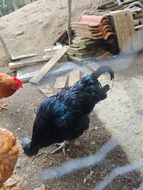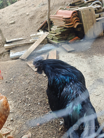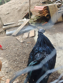 Vendo Gallo Ayam Cemani di razza pura. Comprato da un allevamento in Germania l'anno scorso. Bellissimo gallo con riflessi verde/viola come visibile dalla foto. Gallo di 3 anni, vendo per esubero.