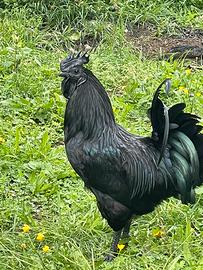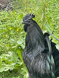 Vendo stupendo gallo Ayman Cemani di nemmeno un'anno per esubero galli nel pollaio. Valuto anche uno scambio con gallina Araucana , Marans o Logbar .