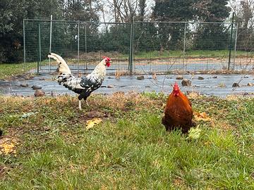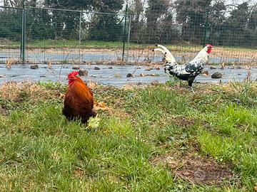 Galletti di 9 mesi, allevati sempre all'aperto con dieta di mais e mix cereali.