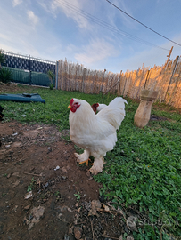 Gallo razza ornamentale, brahma Colorazione total white ( bianco) 8 mesi, nato ad aprile, ancora non canta ma copre le galline Per ricerca: brahma, brama, bhrama, bramha
