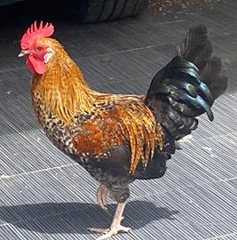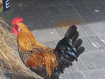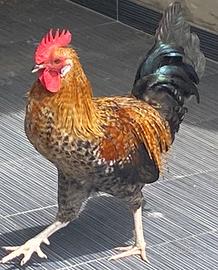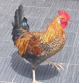 Il gallo ha urgentemente bisogno di una nuova casa. Ha un occhio con vista scarsa perché un altro gallo lo ha ferito. È di buon carattere.