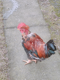 Scambio con gallina. Gallo giovane, galletto. Non posso tenerlo perché il dominante più vecchio lo picchia. No pentola!