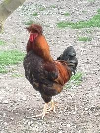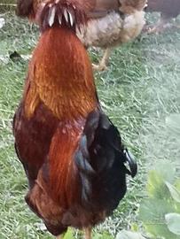 Bellissimo gallo nato in primavera 2025, frutto di incrocio tra Brahma e Polverara. Esemplare sano, vivace e ben sviluppato, con portamento fiero e struttura robusta tipica del Brahma, unita all'eleganza e al caratteristico ciuffo della Polverara. Piumaggio folto e curato, zampe forti, ottima rusticità e adattabilità sia a piccoli allevamenti familiari che a contesti più ampi. Animale abituato alla presenza umana, attivo e attento, ideale anche come soggetto ornamentale oltre che riproduttivo. ? Nato primavera 2025 ? Incrocio Brahma x Polverara ? Ciuffo ben evidente ? In salute, già autonomo ? Ideale per allevamento o decorazione cortile Disponibile per visione. Contattami per ulteriori informazioni.