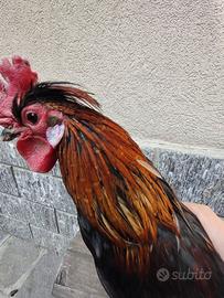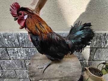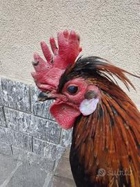 Razza Gallus gallus domesticus. Ha circa 1 anno è in salute e in forma il collo è colorato. Si chiama Filippo