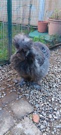 Disponibile galletto moroseta di circa 6 mesi nato da gallo nero e gallina bianca .