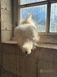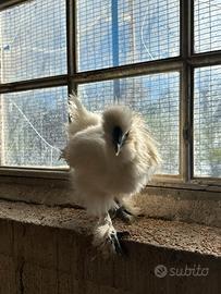 Disponibile giovane galletto di 5/6 mesi di razza Moroseta nana colorazione bianca.