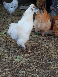 Vendo gallo Moroseta di un anno, taglia grande piumaggio bianco.
