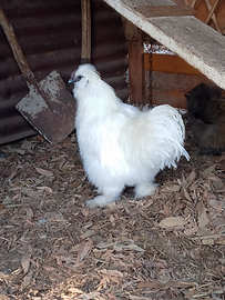 Vendo gallo razza moroseta colorazione bianca età 1 anno e mezzo Valuto scambio con gallo stessa razza