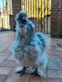 Vendo bellissimo gallo Moroseta colorazione splash È nato nel mio pollaio. Lo vendo perché ho già un altro maschio. Docilissimo come tutti gli esemplari di questa bellissima razza. Sta appollaiato sul braccio senza bisogno di tenerlo. Padre e madre visibili. Per altre foto o informazioni contattatemi qui o su WhatsApp.