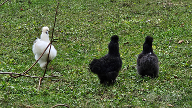 Due galline moroseta maschio , uno bianco e uno nero , di 5 mesi