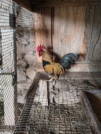 Cedo 2 galli Livorno colorazione selvatica oro e un galletto nano incrocio serama