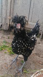 Disponibile gallo padovana ciuffata giovane è pronto alla riproduzione a 15 euro, colorazione argento orlo nero, foto reali del soggetto, accetto scambio con gallina stessa razza con gallina nostrana o amrock, pulcini o per cambio sangue. Per chi fosse interessato o proposte scriva qua.