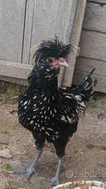 Disponibile gallo padovana ciuffata giovane è pronto alla riproduzione a 15 euro, colorazione argento orlo nero, foto reali del soggetto, accetto scambio con gallina stessa razza con gallina nostrana o amrock, pulcini o per cambio sangue. Per chi fosse interessato o proposte scriva qua.