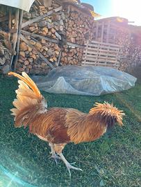 Nato ad aprile 2024, di carattere territoriale, di razza padovana, che rientra nelle razze ornamentali. Bel piumaggio arancione giallo. Per info contattare qui.