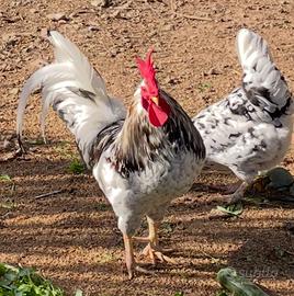 Disponibili 4 galli ornamentali: 3 giovani uni adulto. In genetica hanno la forma e peso simile a livornese e uova e colorazione delle stesse con guscio azzurro, come araucana. Peso uovo circa 55/65 grammi