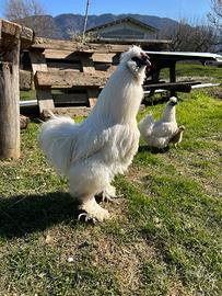 Vendo splendido esemplare di gallo Moroseta di circa un anno di età. Il soggetto è in ottima salute, piumaggio folto e tipico della razza. Dettagli principali: Età: 12 mesi (giovane e nel pieno della maturità sessuale). Carattere: Equilibrato e protettivo con il gruppo. Attitudine: Già attivo e testato per la riproduzione. Salute: Regolarmente alimentato e cresciuto all'aperto. Ideale per chi vuole iniziare un allevamento di questa razza ornamentale o per chi cerca un nuovo stallone per rinsanguare il proprio gruppo.