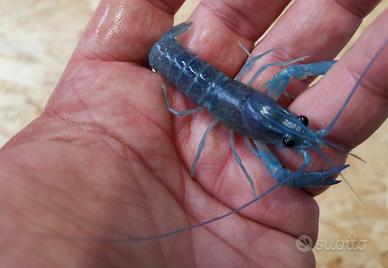 ARAGOSTE ORNAMENTALI Disponibili -Cambarellus patzcuarensis orange/blue, diminitus 2cm, crescita 4cm Euro 8 -Cherax quadricarinatus blue 5cm, crescita 20cm. -Procambarus alleni blue 4cm, crescita 12cm. Euro 20 ognuno. Dedicato a chi conosce ama e rispetta la specie e non a chi pensa di mettere in acquario tutto ciò che gli piace senza sapere cosa sta mettendo. Possono convivere con altri esemplari solo in grandi litraggi e con molti nascondigli a doppia uscita data la loro natura territoriale, convivono con pesci che non possono predare nè esserne preda. Necessitano di nascondigli soprattutto per protezione nelle fasi di muta momento di maggiore vulnerabilità e difficoltà. Carnivoro, diurno, si consigliano 1-2 esemplari, resistente, vanno comunque rispettati i parametri di un acquario per il suo benessere. Abili arrampicatori, per istinto cercheranno appigli, spazi, fessure, aperture, per tentare la fuga, l'acquario dovrà quindi essere ben chiuso in tutte le sue parti. In caso di fuga e ritrovamento, non andrà inserito subito in acqua perché essendo passato ad utilizzare il sistema di respirazione ad aria, potrebbe annegare se non abituato per alcuni giorni in vasca acqua/terra. Piante, ciottoli, flusso d'acqua lento. ---- GAMBERI FILTRATORI Disponibili atya: -atyopsis moluccensis, (gambero radar, gambero ventaglio) 2-3cm, crescita 8cm, euro 8,50 -atyopsis gabonensis, 4-6cm crescita 15cm, euro 10, pacifici ed innocui. Possono stare con pesci di dimensioni e comportamento che non siano pericolosi verso la specie. Necessita di vivere in colonie e non singolarmente, notturno, non territoriale, si nutre filtrando l'acqua e di cibo affondante. Acquario ossigenato, necessita di piante e nascondigli. Disponibili altre specie di pesci, piante, mangimi specifici, in annuncio o telefonare per informazioni. PRIMO CONTATTO TELEFONICO 3717704100, LEGGO RARAMENTE I MESSAGGI SUL SITO. Non è un negozio non c'è quindi apertura al pubblico. SPEDIRE ANIMALI È ILLEGALE.
