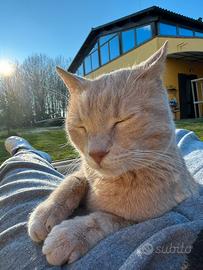 Cerco una nuova famiglia per Gas, un gatto meticcio biondo di 15 anni di campagna.