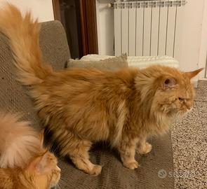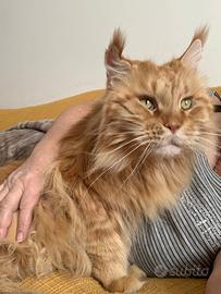 Gatta adulta (2017) di razza Maine Coon colore rosso. Misura grande come un maschio. Pelo lungo folto. Molto dolce e socievole. Un vero amore.