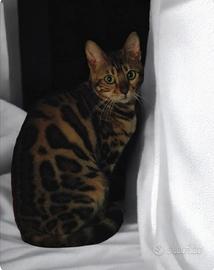 Disponibile splendida gatta Bengala femmina di 1 anno e mezzo, con pedigree, dal mantello maculato intenso e brillante, tipico della razza. Si distingue per la sua eleganza, intelligenza e carattere equilibrato: affettuosa, socievole e abituata al contatto umano, vive serenamente in ambiente domestico Caratteristiche principali: - Femmina Bengala con pedigree - 1 anno e mezzo - Non sterilizzata - Mantello di alta qualità - Ottima salute, vaccinata e sverminata - Abituata alla lettiera e alla vita in casa - Ideale sia come animale da compagnia di alto livello, sia per chi cerca un esemplare valido anche per futura riproduzione Viene ceduta solo a persone serie e realmente interessate - Abruzzo Tortoreto - Prezzo: 1000 - Contatto: 3804515922 - Disponibile per ulteriori informazioni