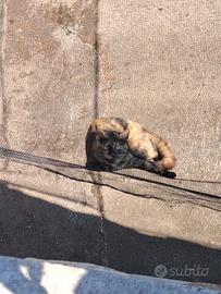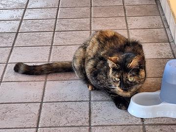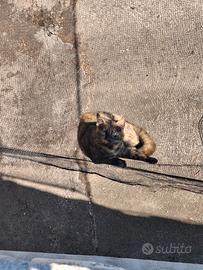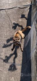 Gatta femmina domestica nera e marrone chiaro, occhi verdi, non sterilizzata. Etá circa un anno.