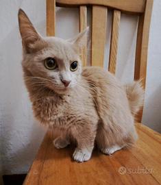 Cedo la Gatta di razza Munchkin, molto coccolona, di taglia piccolissima, 2,5kg, di colore molto raro: fawn, con piccolo medaglione bianco, con le zampine corte. Viene ceduta vaccinata, testata, con pedigree Serenissima Cat Club.