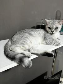 Gatta Scottish Straight Black Silver Chinchilla Età: 3 anni Nome: Luna Carattere: Molto affettuosa, ama giocare e stare in compagnia. Abituata a stare in casa. Salute: Già sterilizzata e vaccinata, nessun problema di salute. (Preferenze per crocchette a base di pesce)