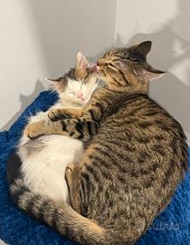 A malincuore cerchiamo una nuova famiglia per le nostre due gatte di 1 anno e mezzo. Sono inseparabili, cresciute insieme e molto legate, per questo desideriamo trovare qualcuno disposto ad accoglierle entrambe senza dividerle. Sono dolcissime, amano le coccole, stare in braccio e la tranquillità della casa. Non sono mai uscite, quindi sono abituate a vivere esclusivamente in appartamento. Sono sterilizzate, vaccinate e sverminate. Cerchiamo persone responsabili e amanti degli animali, che possano offrire loro tanto affetto e una casa sicura