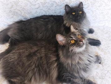Due sorelline di razza Siberiana con Pedigree di Associazione riconosciuta dal Ministero cercano casa INSIEME. Sono vaccinate, microchippate e già sterilizzate. Hanno due anni e non hanno mai avuto cuccioli. Dolcissime entrambe ma con due caratteri diversi che si completano. Chiediamo solo il rimborso spese per la sterilizzazione. Allevamento di Roma.
