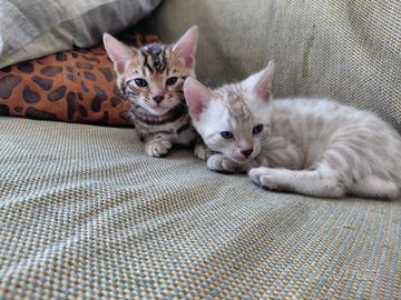 Cuccioli di gatti Gatti bengala Genitori testati su pkdef pra-b hcm Da rosette meravigliose ben definite I gatti vengono cresciuti in casa abbituati al contatto umano Il cucciolo viene ceduto a tre mesi Con pedigree Microchip 2 vaccini Esami feci (completo con giardia) Certificato di buona salute