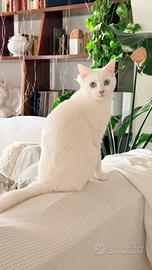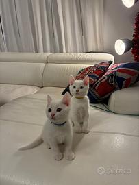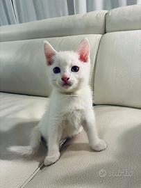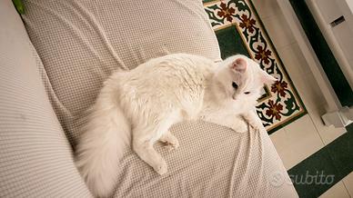 Disponibili ultimi due maschi bianchi pelo lungo occhi azzurri . Nati in casa il 16 gennaio . Genitori visibili in foto Si cedono sverminati e spulciati Disponibili fin da subito Possibilità di trasporto con treno da Napoli a Milano centrale . Abituati a lettiera , cibo sia secco che umido kitten . NON SONO IN REGALO . Per altre info contattatemi con un messaggio