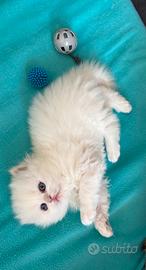 Un maschietto lillac golden, due femminucce golden point occhi azzurri ed una chocolate golden.